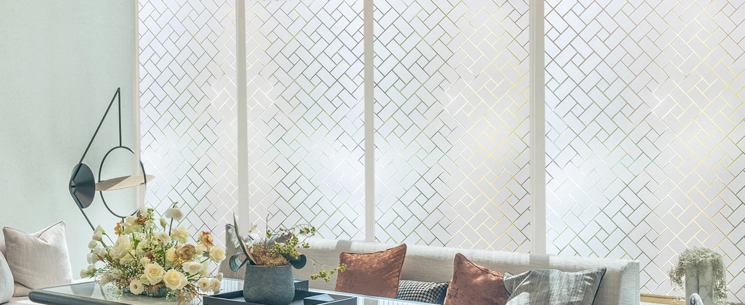 This window film features the classic frosted texture and descent patterns, brings new design sense